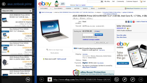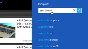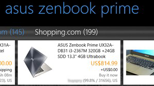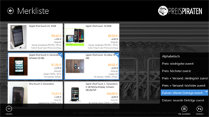 Windows 8TM Snap View: Behalte die Suchergebnisliste im Auge während du gleichzeitig in den Online-Stores browsen kannst.