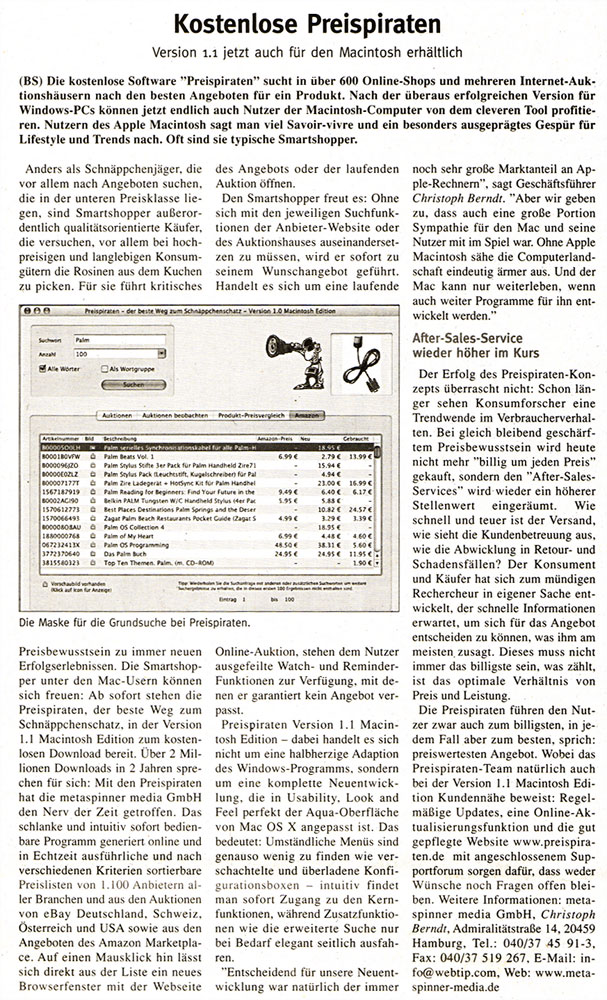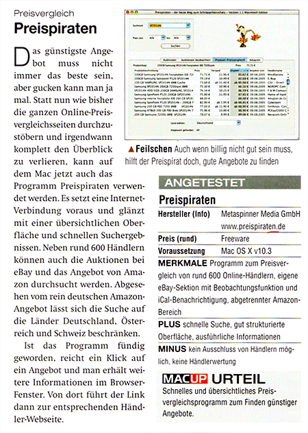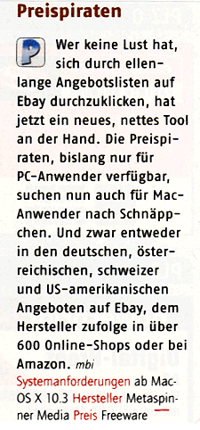 "Kostenlose Preispiraten - Version 1.1 jetzt auch für den Macintosh..."