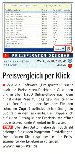 "Neben der aktuellen Version Preispiraten 4.0 gibt es auch eine Preispiraten Deskbar. Sie bietet die Grundfunktionen des großen Bruders und..."