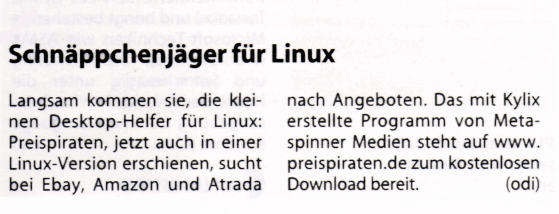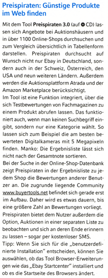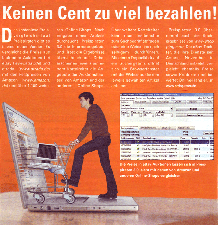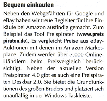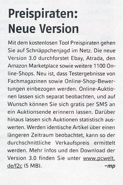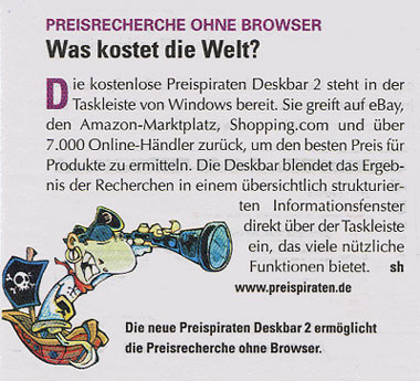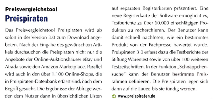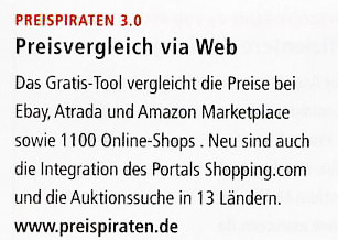"Preispiraten ist das ideale Handwerkszeug für Schnäppchenjäger und 'notorische Preisvergleicher'..."