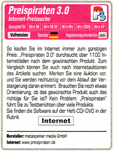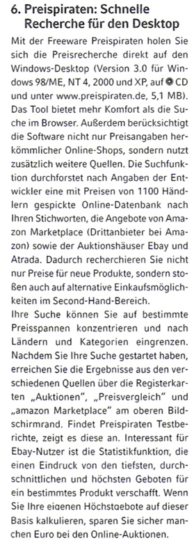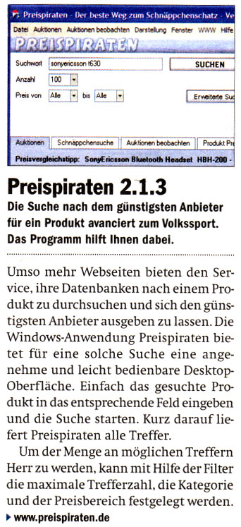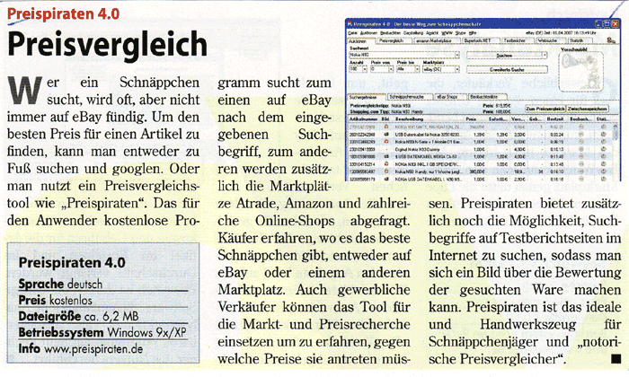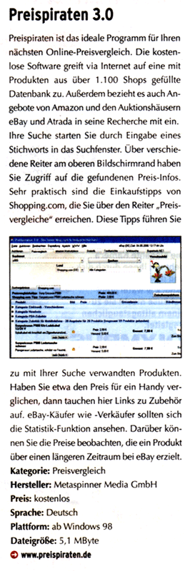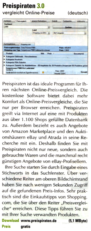 "Preispiraten ist das ideale Programm für Ihren nächsten Online-Preisvergleich..."